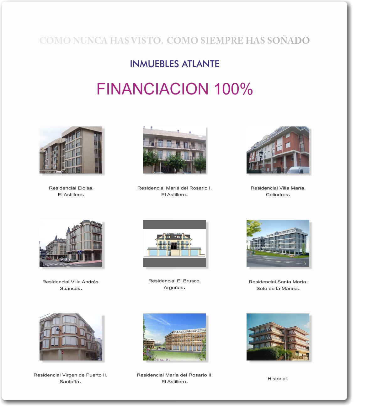 Eloisa Rosario I Villa María Villa Andrés El Brusco. Santa María. Virgen de Puerto II. Rosario II. Historial. Inmuebles Atlante.